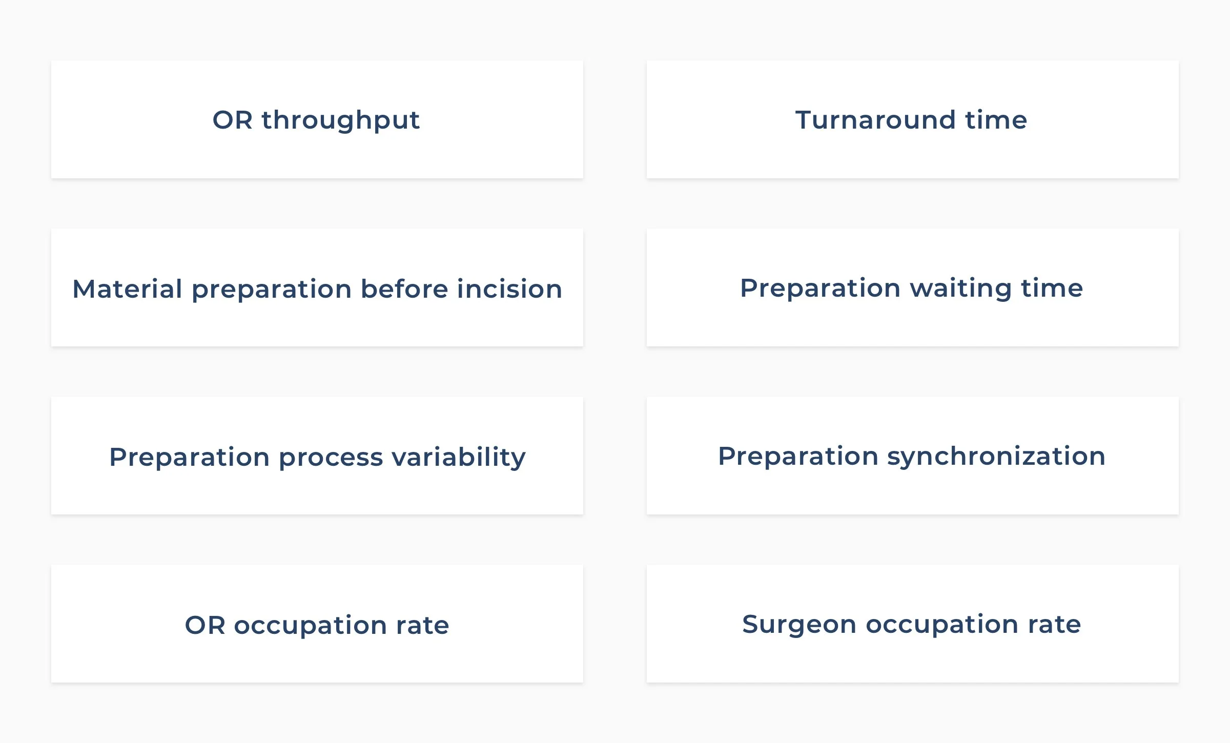 Operating rooms drive both revenue and costs, making efficiency critical to hospital performance. Key metrics, such as standardization, consistency, parallel processing, and optimal use of staff and materials, help identify improvement opportunities. Even small process changes, like parallelizing preparation steps, can reduce variability, save time, and boost OR throughput.